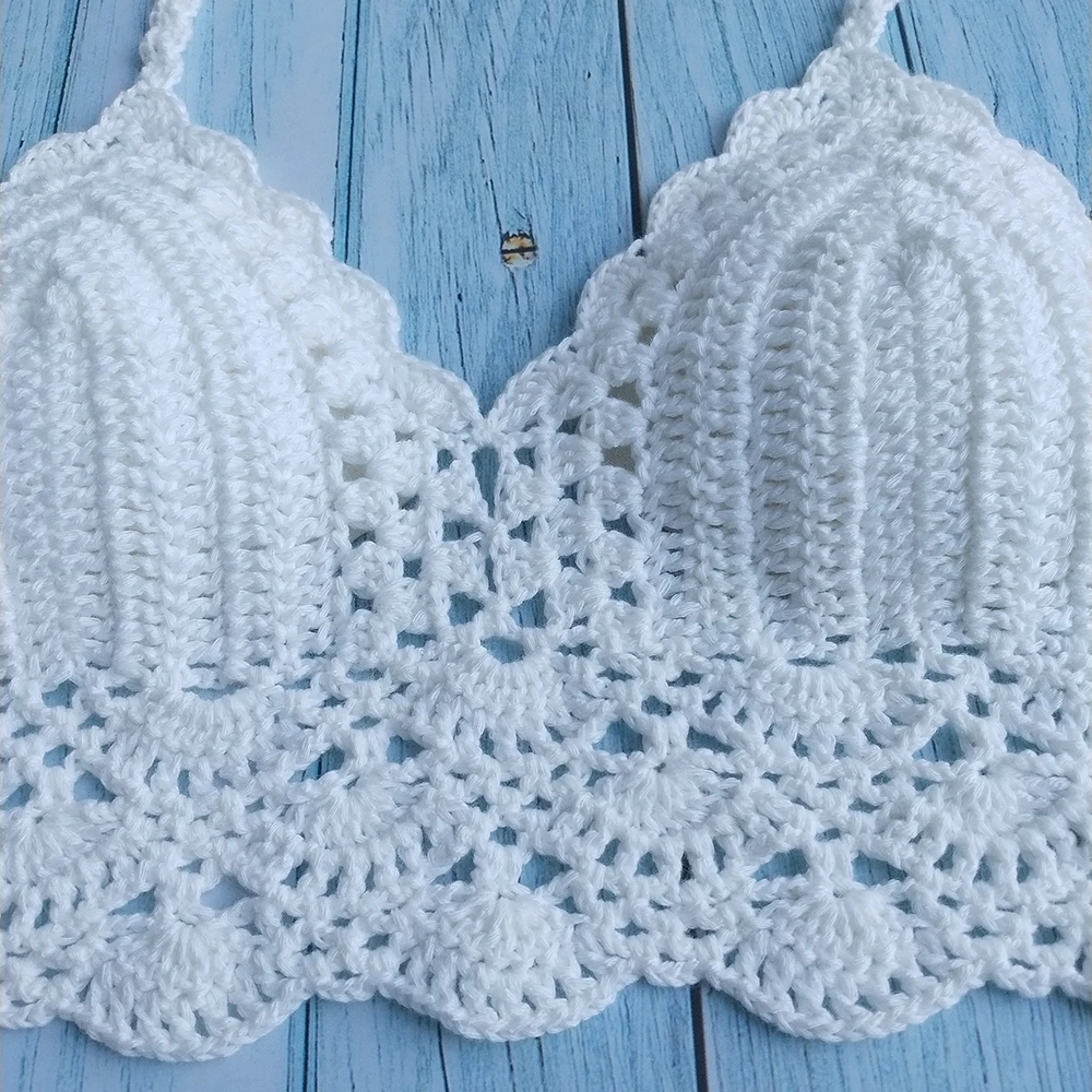 Step up your beach game with this beautifully handcrafted crochet bikini top. Featuring a stylish neck-hanging and adjustable shoulder strap design, this top provides a perfect, true-to-size fit. Made from high-quality polyester and polyamide, it’s both comfortable and durable. The unique lattice and floral pattern adds a touch of bohemian charm, making it a must-have for your swimwear collection. This top is sold without a lining or chest pads for a natural, lightweight feel, and is also available at a wholesale price, making it a great choice for stocking up.