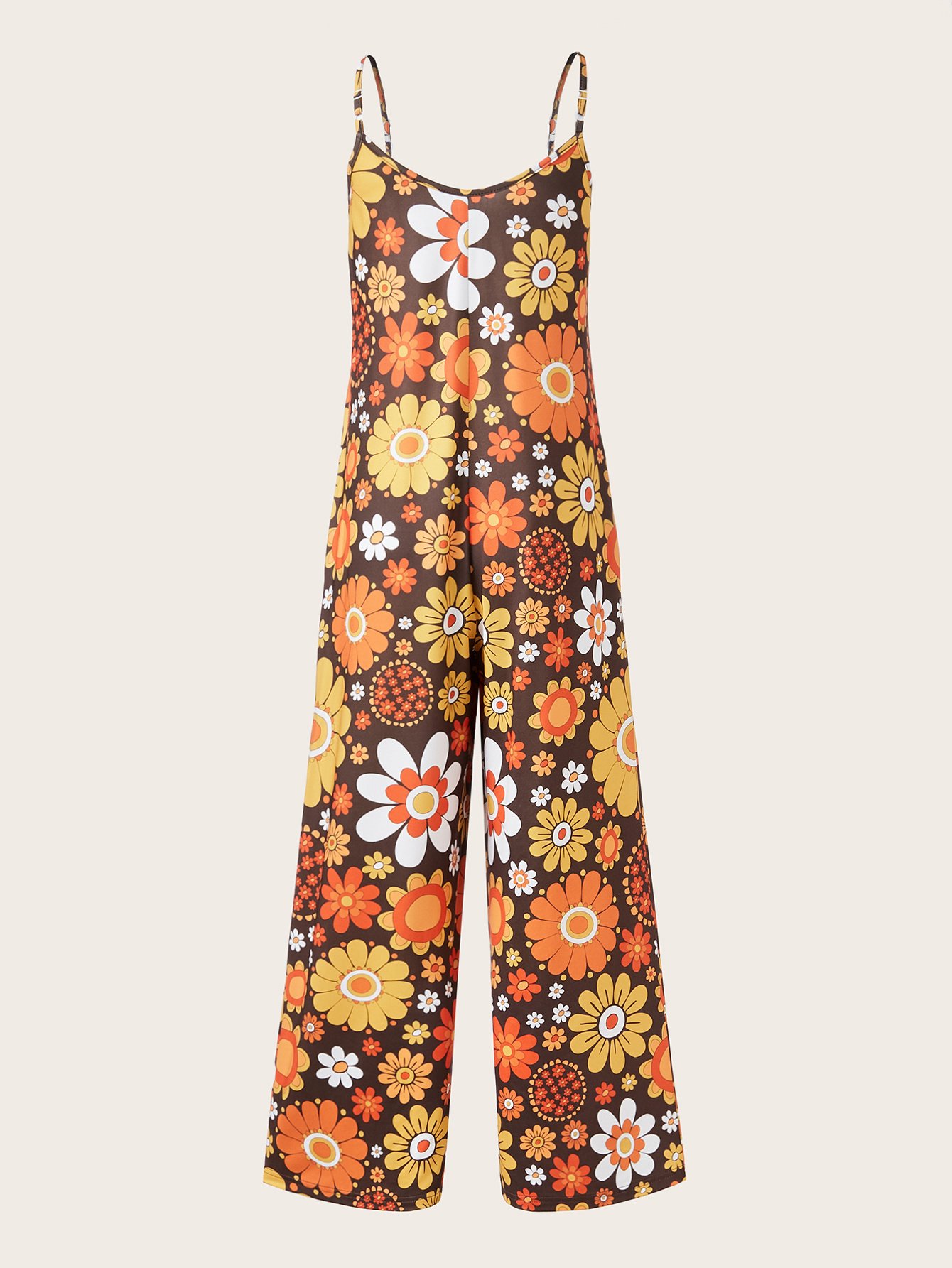 Plus Size Women’s Allover Printed Pattern Camisole Casual Street Jumpsuit Pants